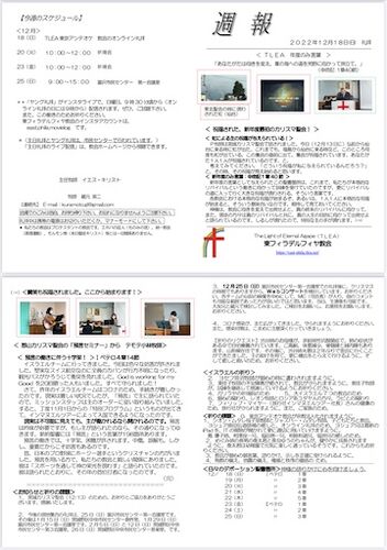 TLEA東フィラデルフィヤ教会の牧師であられます、蔵元さんから週報が届きました。 シオン