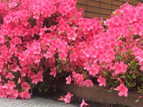ツツジの季節です。気温も20度前後で丁度いいですね。お向かいのお家の庭にもツツジが絨毯のようです。 いろいろな花を楽しむ、ことができるのは恵みです。 牧師